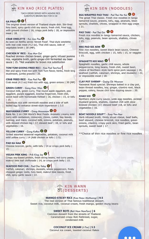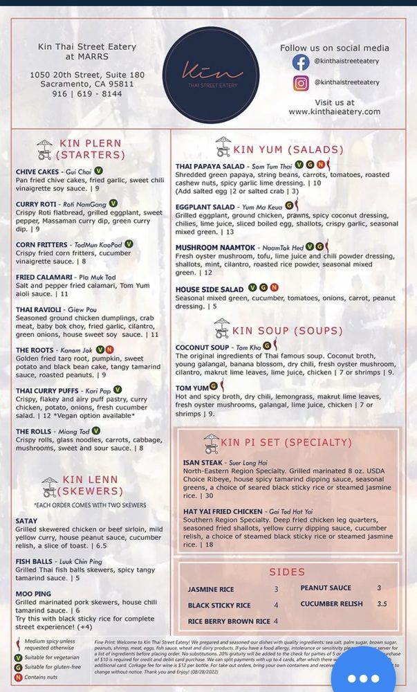 Kin Thai Street Eatery offers a diverse menu with vegan and vegetarian options, making it a great choice for groups with dietary restrictions. Located in Sacramento, the restaurant provides a casual and trendy atmosphere, perfect for brunch, lunch, dinner, or dessert. The dishes are well-presented and delicious, with standout items like the quail egg wontons and Ga Prao with a spicy kick. The service is friendly and prompt, contributing to a delightful dining experience. Despite a minor miss with the Pad Thai, the overall food quality and plating are exceptional. Kin Thai Street Eatery truly excels in delivering fresh, flavorful Thai cuisine in a welcoming setting.